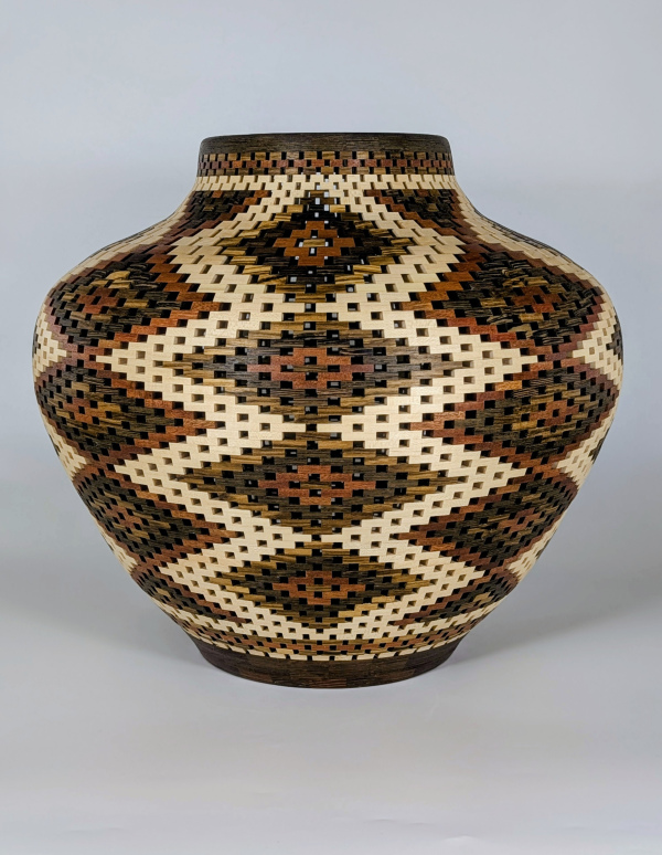 Diamonds of the Desert is formed using Bloodwood, Maple, Wenge and Zebrawoods reflecting the rhythm and clarity of the desert landscape. The geometry echoes sun‑cut angles, shifting shadows, and the quiet structure found in the Sonoran terrain.
